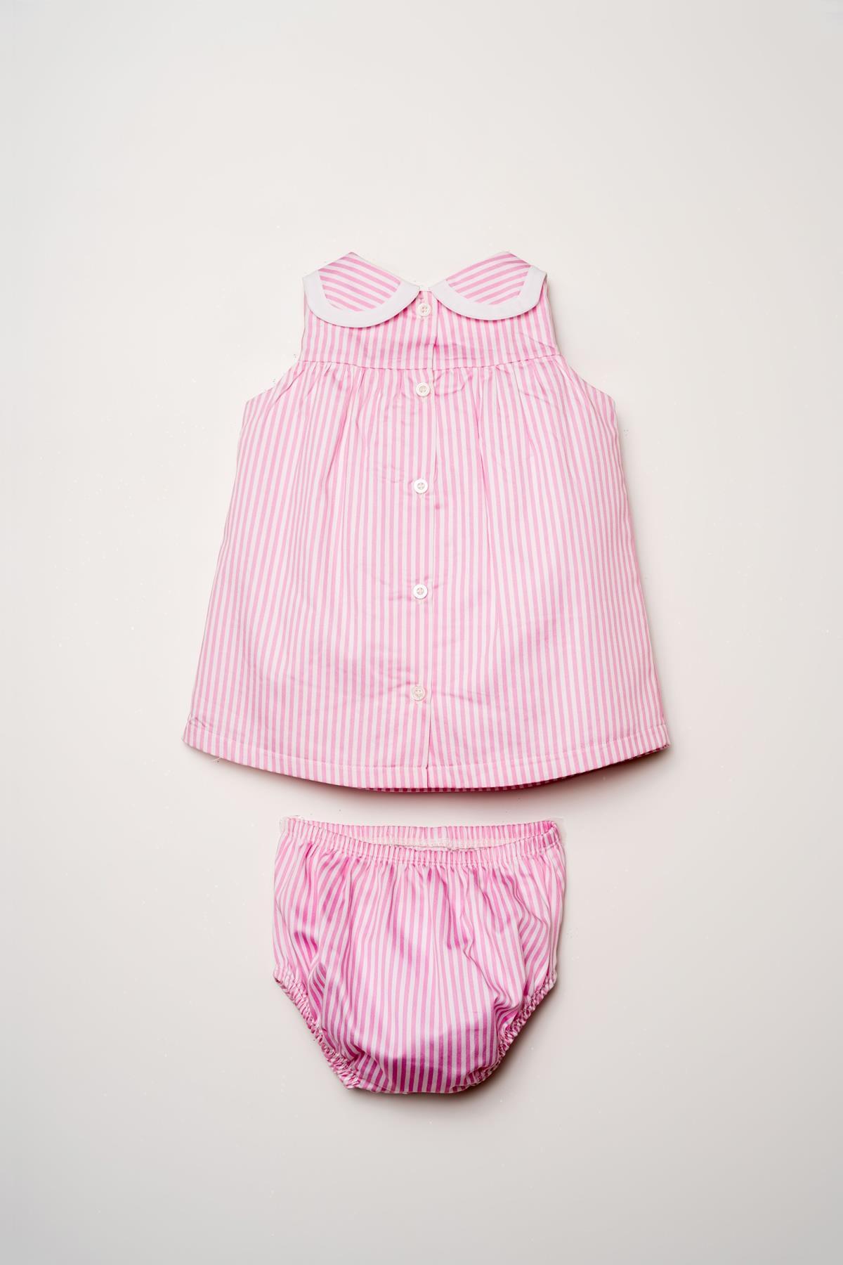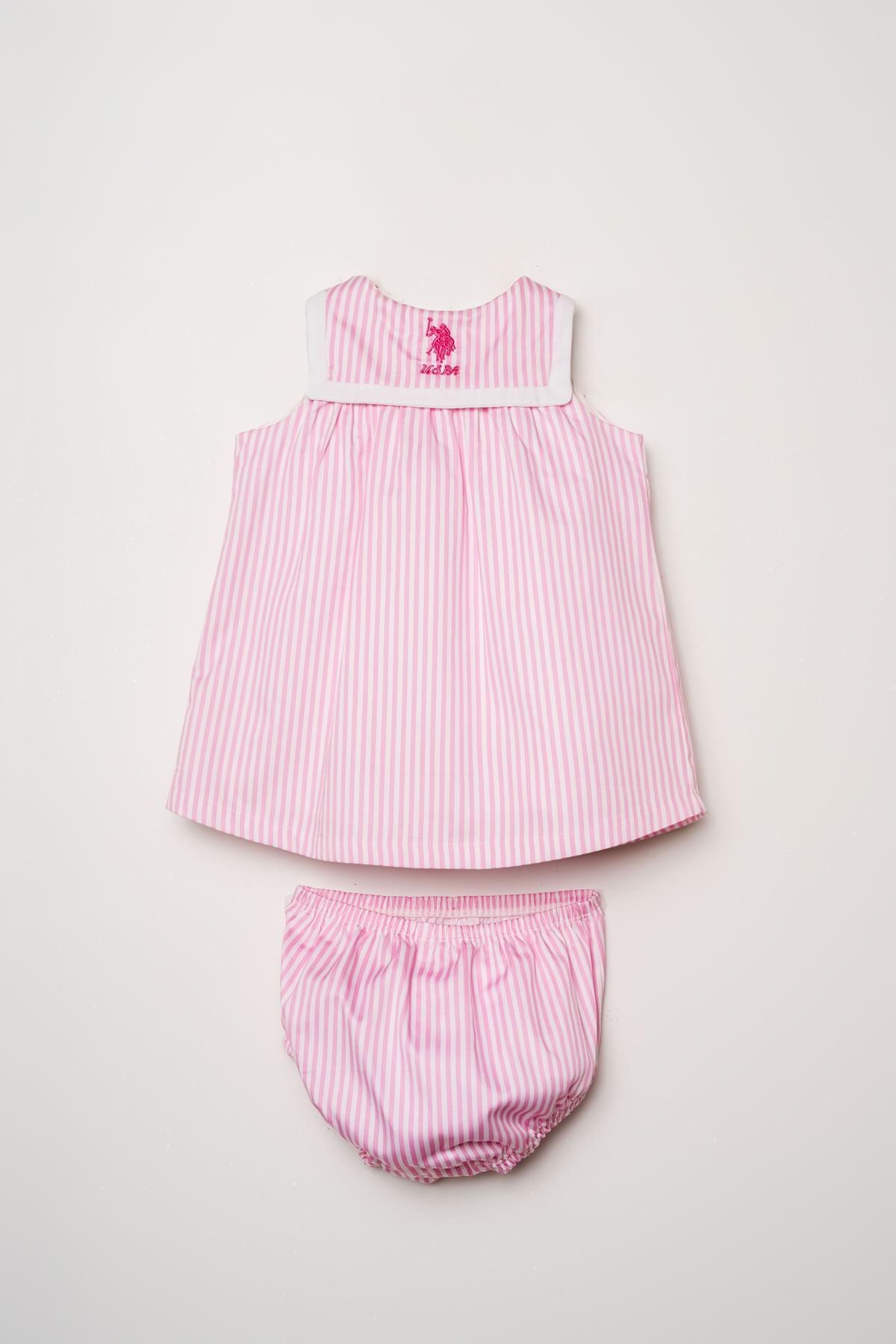 U.S. Polo Assn. Kız Bebek Külotlu Elbise %100 Pamuk Poplin Çizgili Yazlık 2’li Takım 6-9 Ay – 3 Yaş Pembe