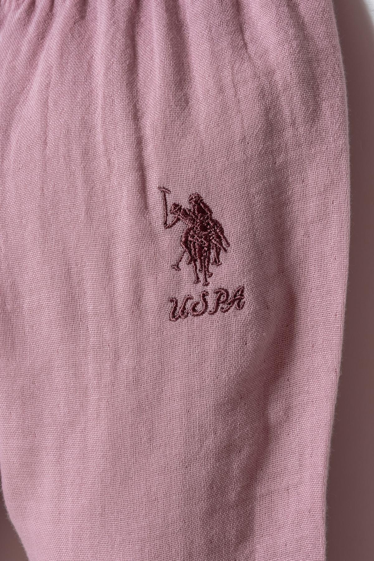U.S. Polo Assn. kız bebek müslin pijama takımı, yaz aylarında bebeğinizin rahat ve ferah uyuması için tasarlanmıştır. %100 pamuk müslin kumaşı sayesinde hafif, nefes alabilen ve terletmeyen yapıya sahiptir.