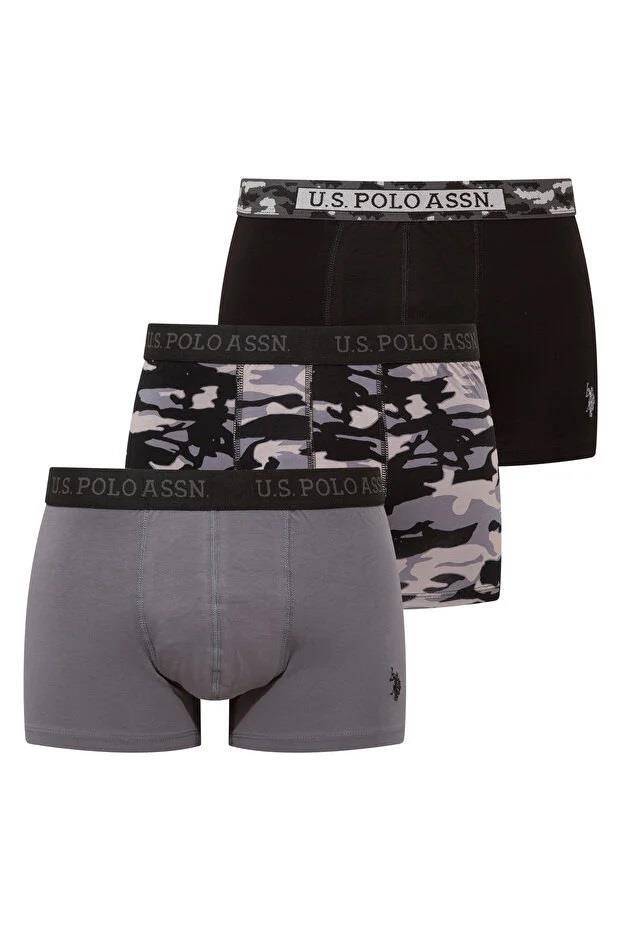 U.S. Polo Assn. Siyah Antrasit Kamuflaj Erkek Boxer %95 Pamuk/Cotton %5 Elastan/Elasthane