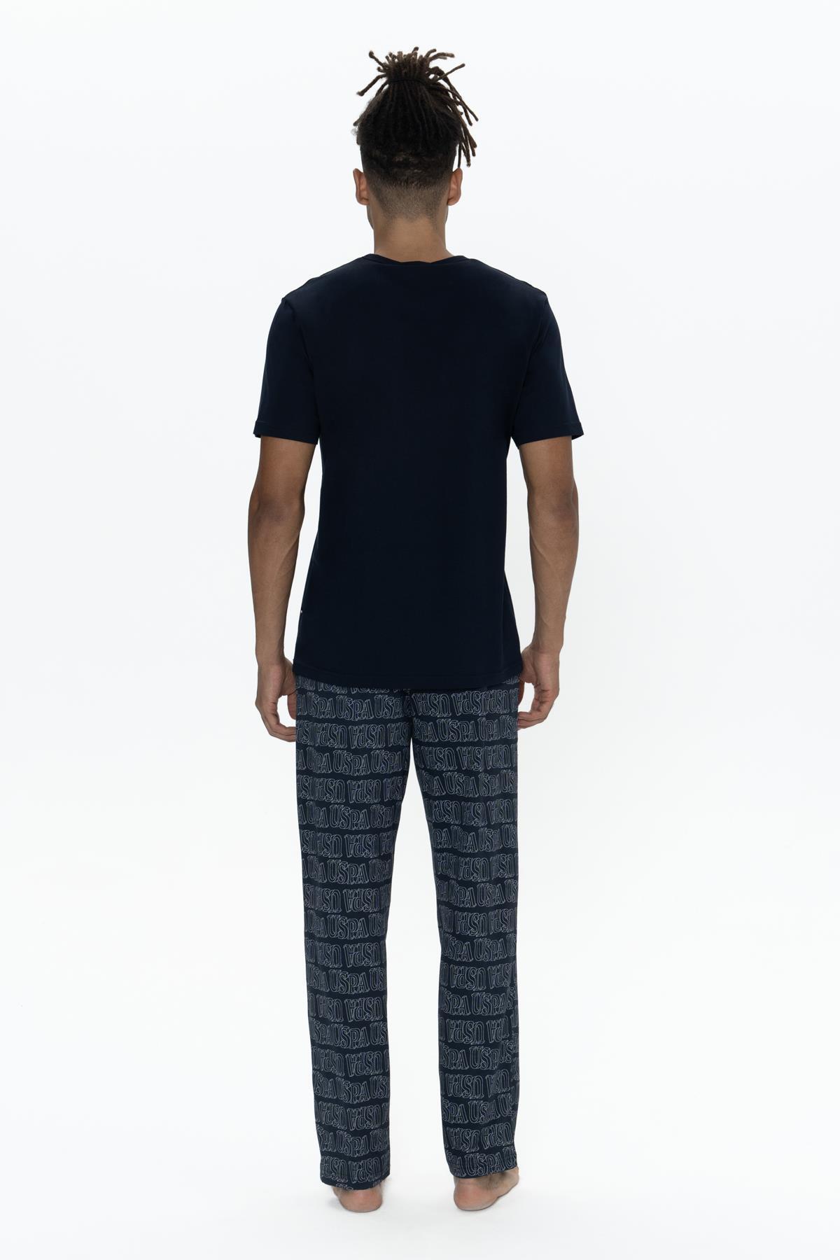 Erkek %100 Pamuk Pijama Takımı – Kısa Kollu Cepli T-Shirt & Desenli Uzun Pijama Altı