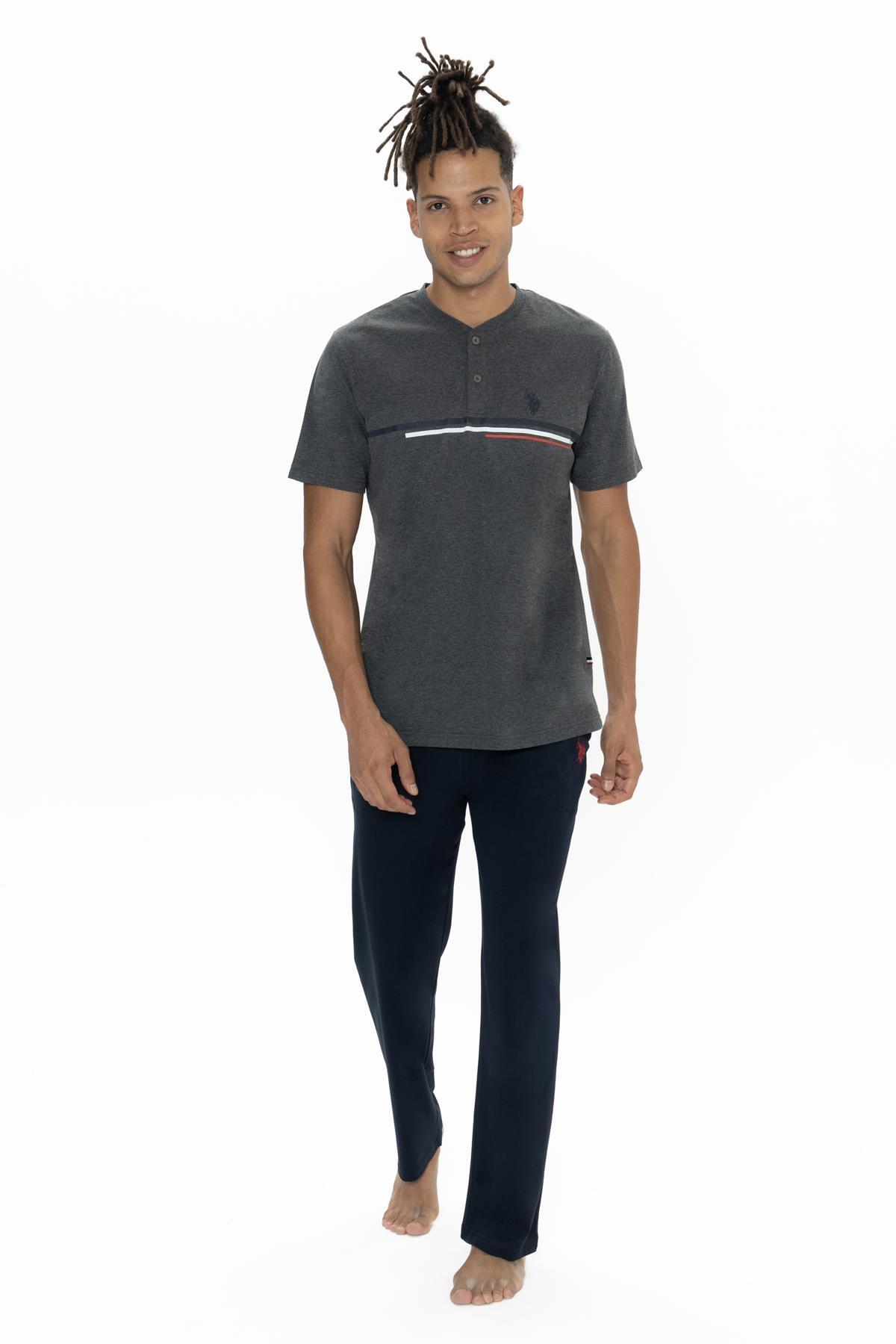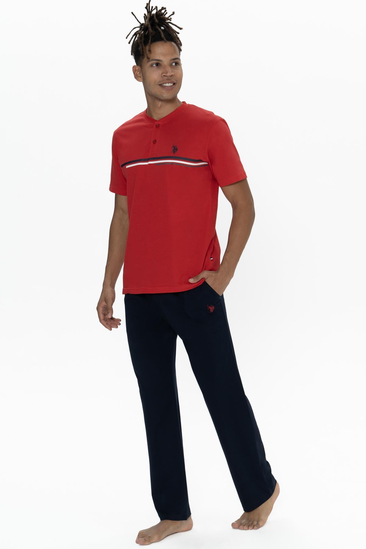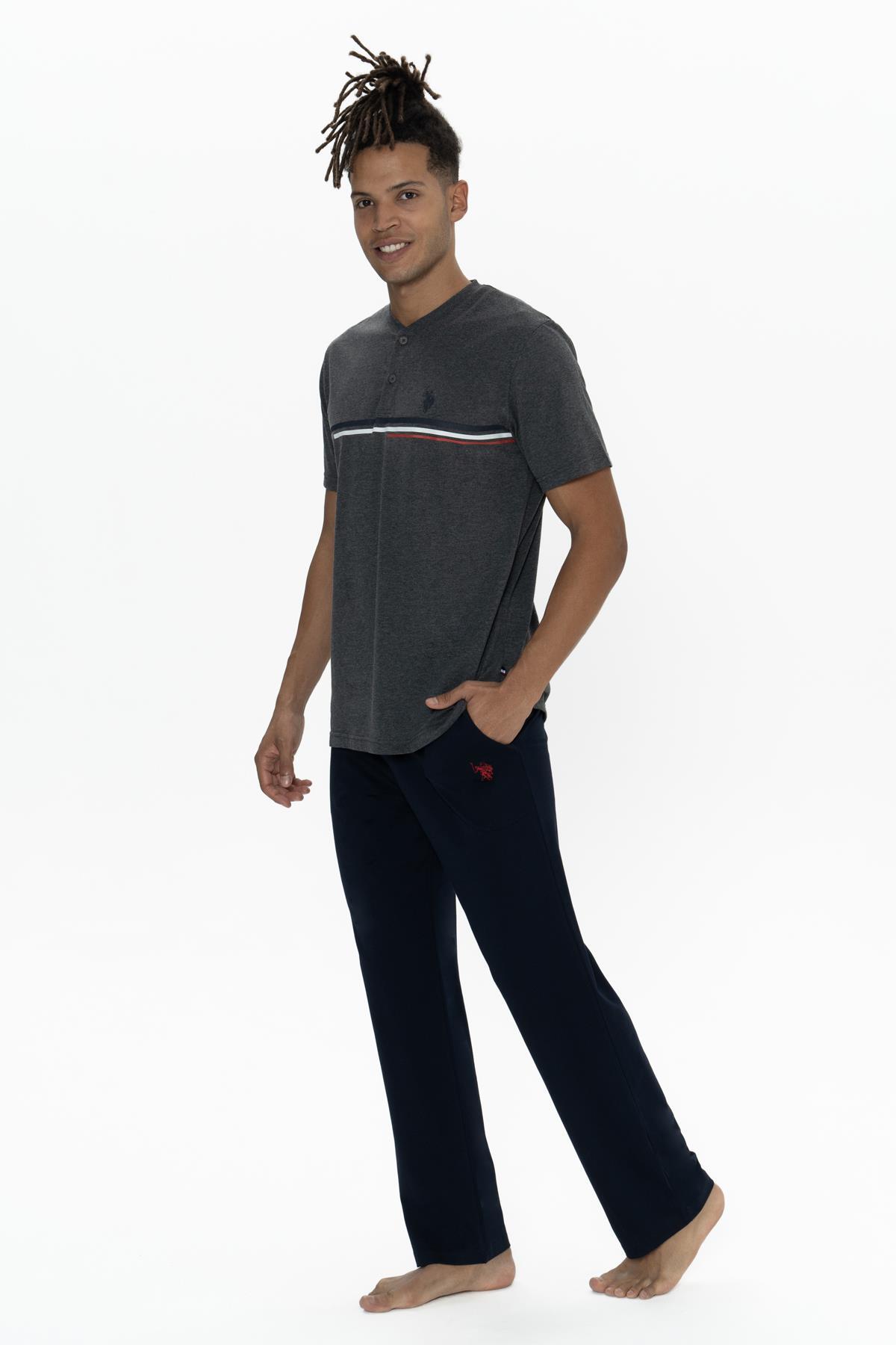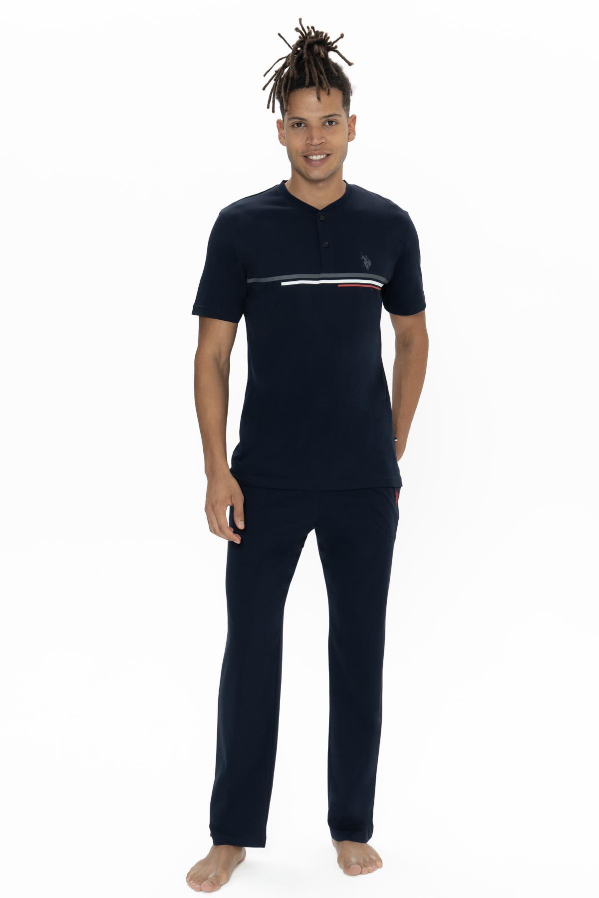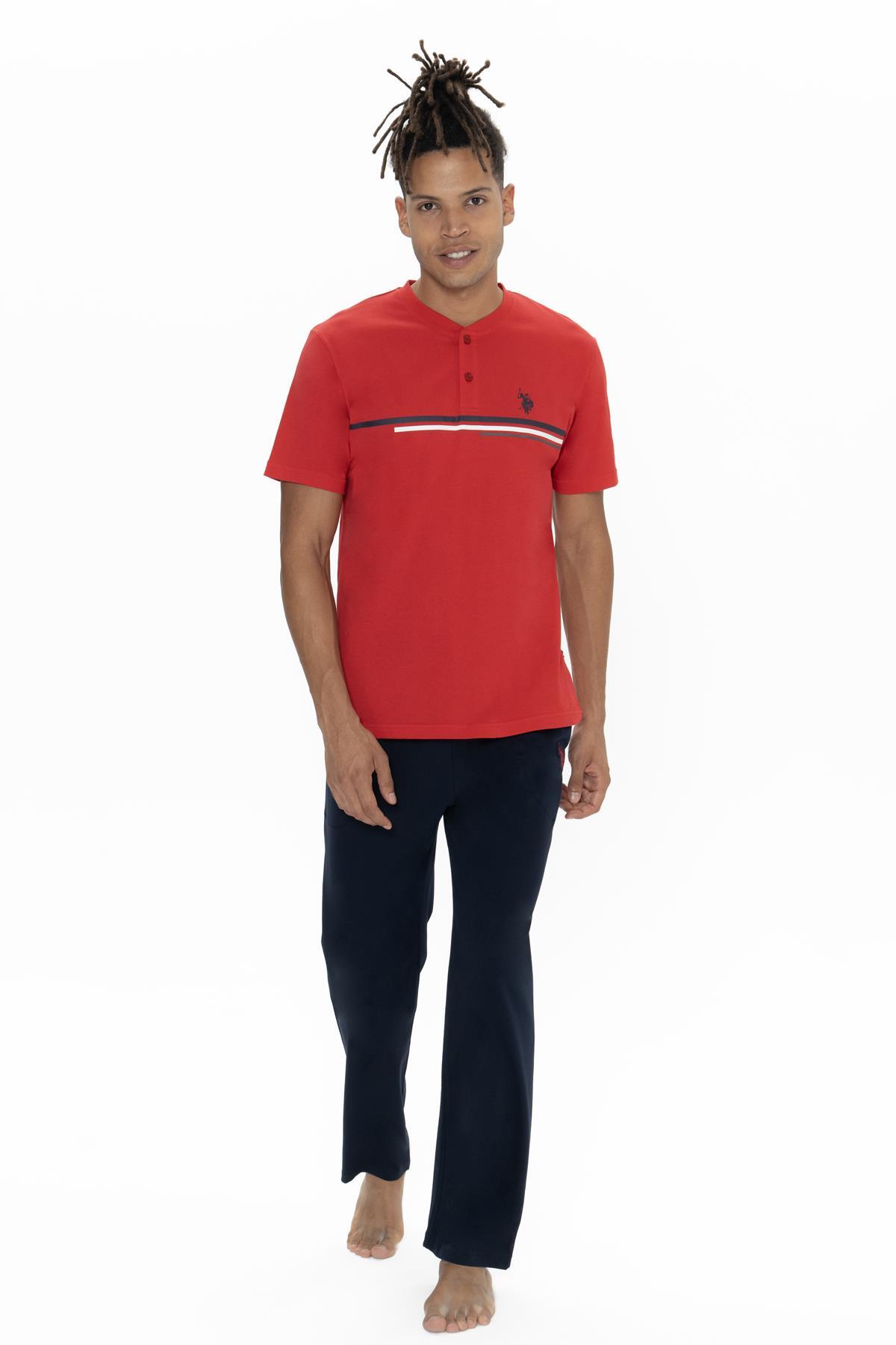 Us Polo Erkek Büyük Beden Pijama Takım, Bisiklet Yaka Düğmeli, Cep Detaylı