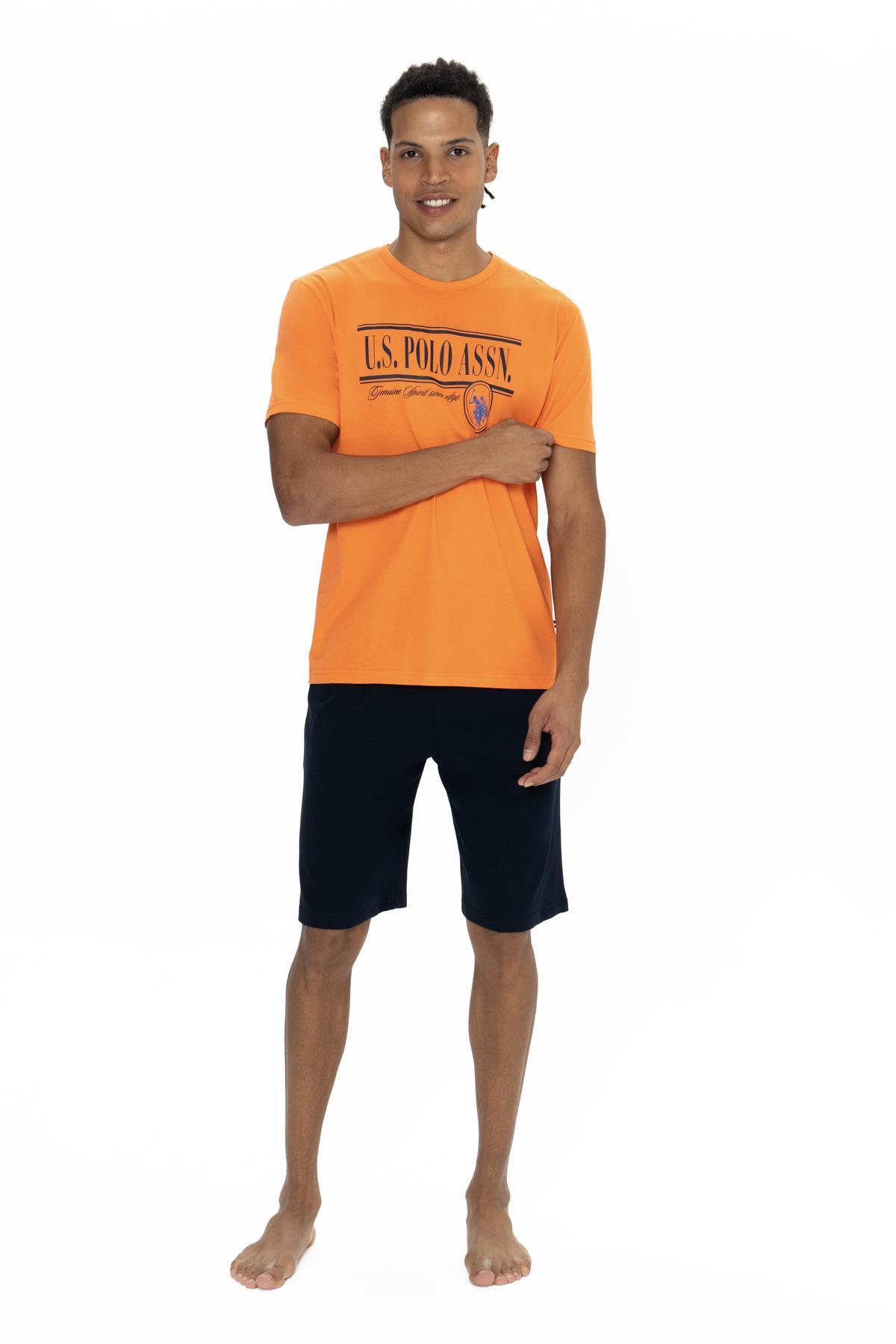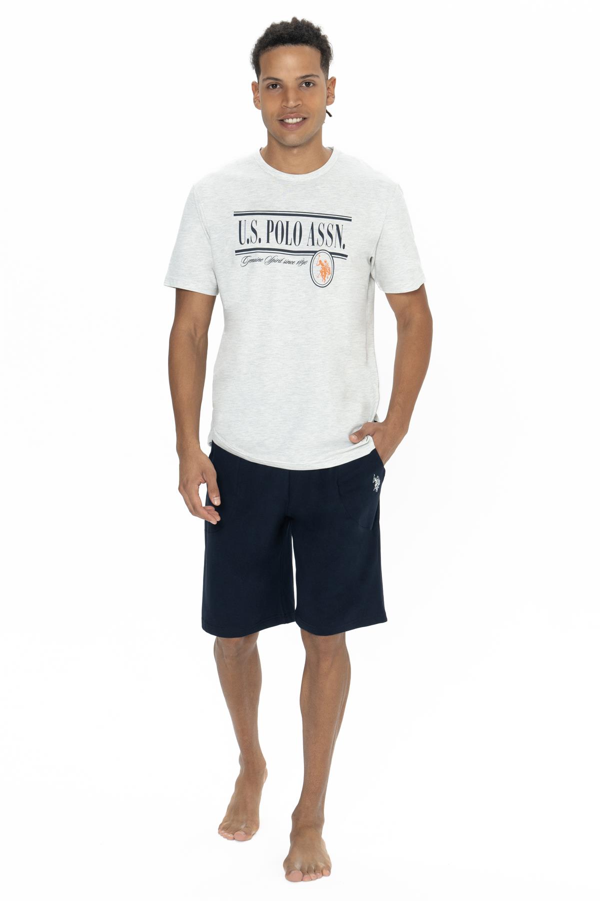 U.S. Polo Erkek Yazılı T-shirt Şort Takım, Bisiklet Yaka, Kısakol, Cepli Şort