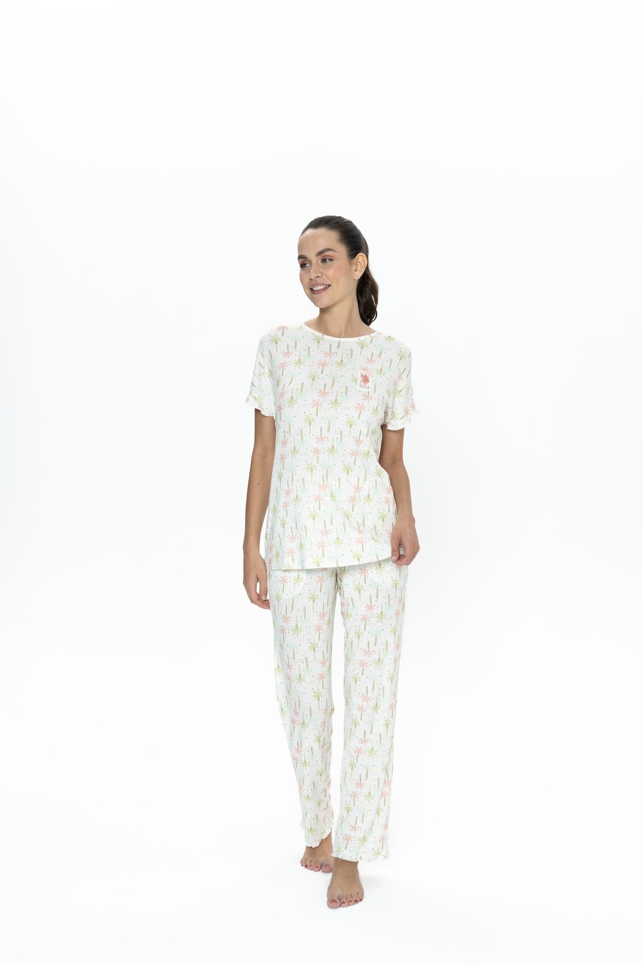 Us Polo Kadın Baskılı Pijama Takım , %95 viskon %5 likra