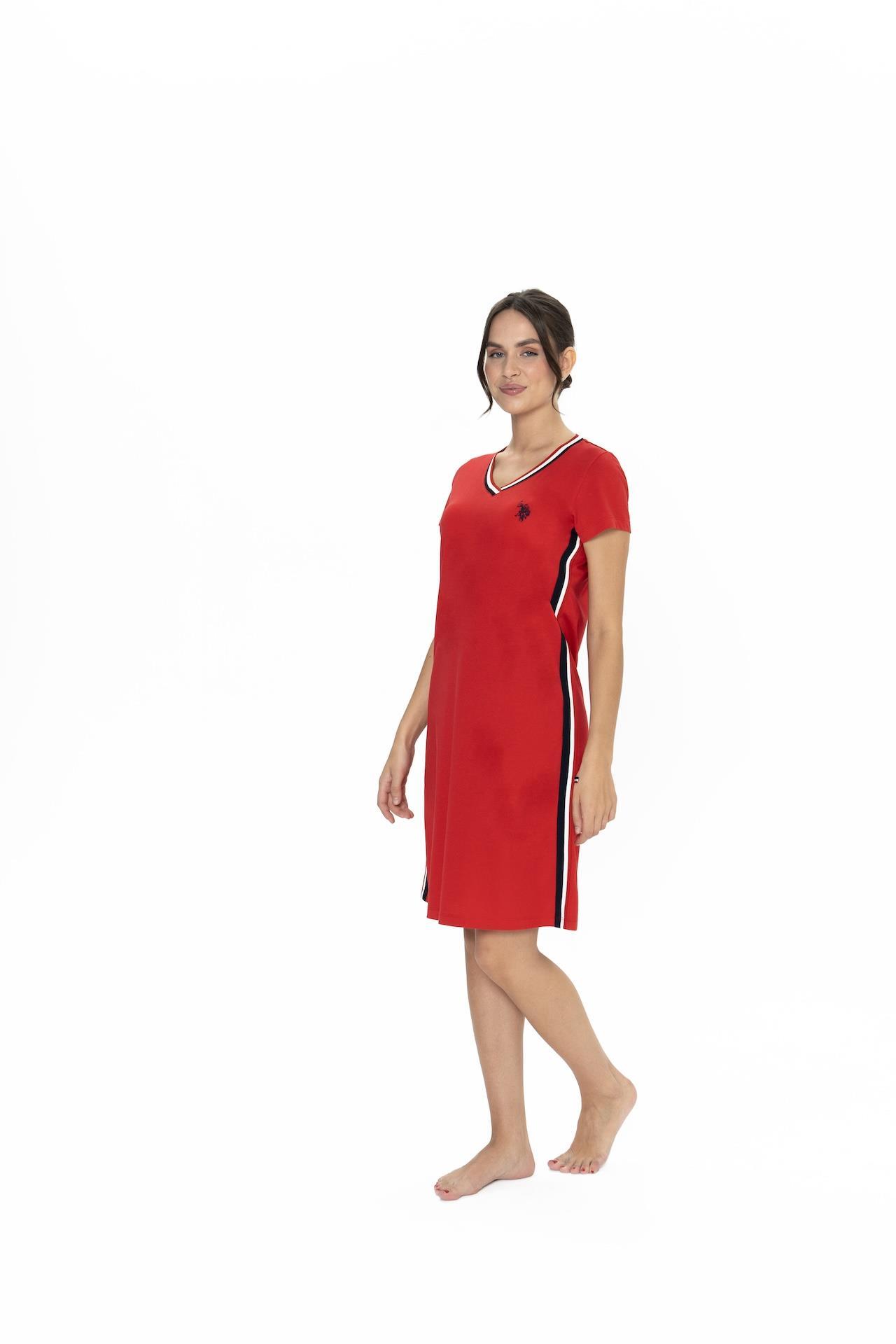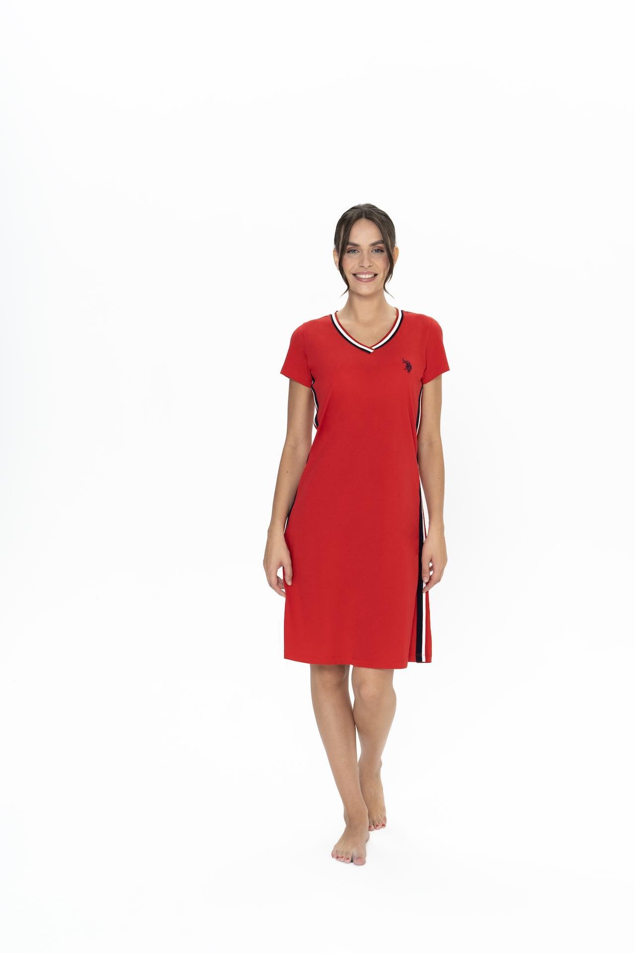 Us Polo Kadın, V Yaka, Kısa Kol, Midi Gecelik
